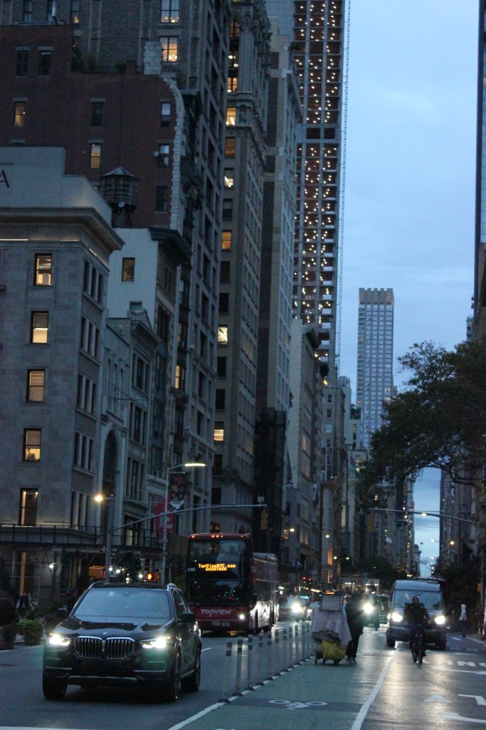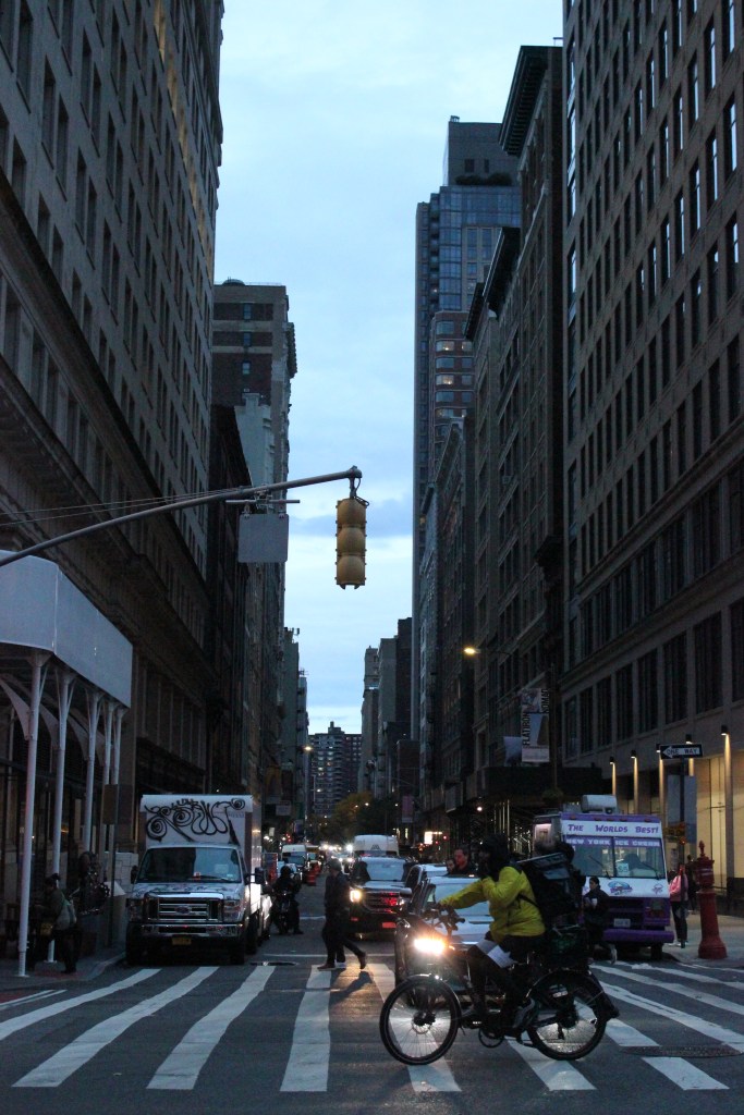 Cars, bikes and buses roll down Fifth Avenue through the Flatiron District on Monday, Oct. 30, 2023.A bicycle delivery driver hangs left toward Madison Square Park during rush hour on Monday, Oct. 30, 2023.A bicycle delivery driver rides past a line of traffic in the Flatiron District on Monday, Oct. 30, 2023.Monday evening traffic outside the scaffolding-clad Flatiron Building in Midtown Manhattan on Oct. 30, 2023.A taxi signals to switch lanes in front of the Flatiron Building on Monday, Oct. 30.A dog pokes his head out of a window on Monday, Oct. 30.People cross before a congested street in the Flatiron District during rush hour on Monday, Oct. 30.A line of cars sit in traffic on Monday, Oct. 30.Cars wait for a green light at the intersection in front of Radio City Music Hall in the early evening on Monday, Oct. 30.Congestion on Fifth Avenue. Monday, Oct. 30, in New York.Cars pass the iconic Radio City Music Hall in Midtown Manhattan on Monday, Oct. 30.Cars sit in traffic on Sixth Avenue in early evening on Monday, Oct. 30.Taxis pass Radio City Music Hall in Midtown Manhattan after evening rush hour on Monday, Oct. 30.The block bustles with evening traffic on Monday, Oct. 30.
