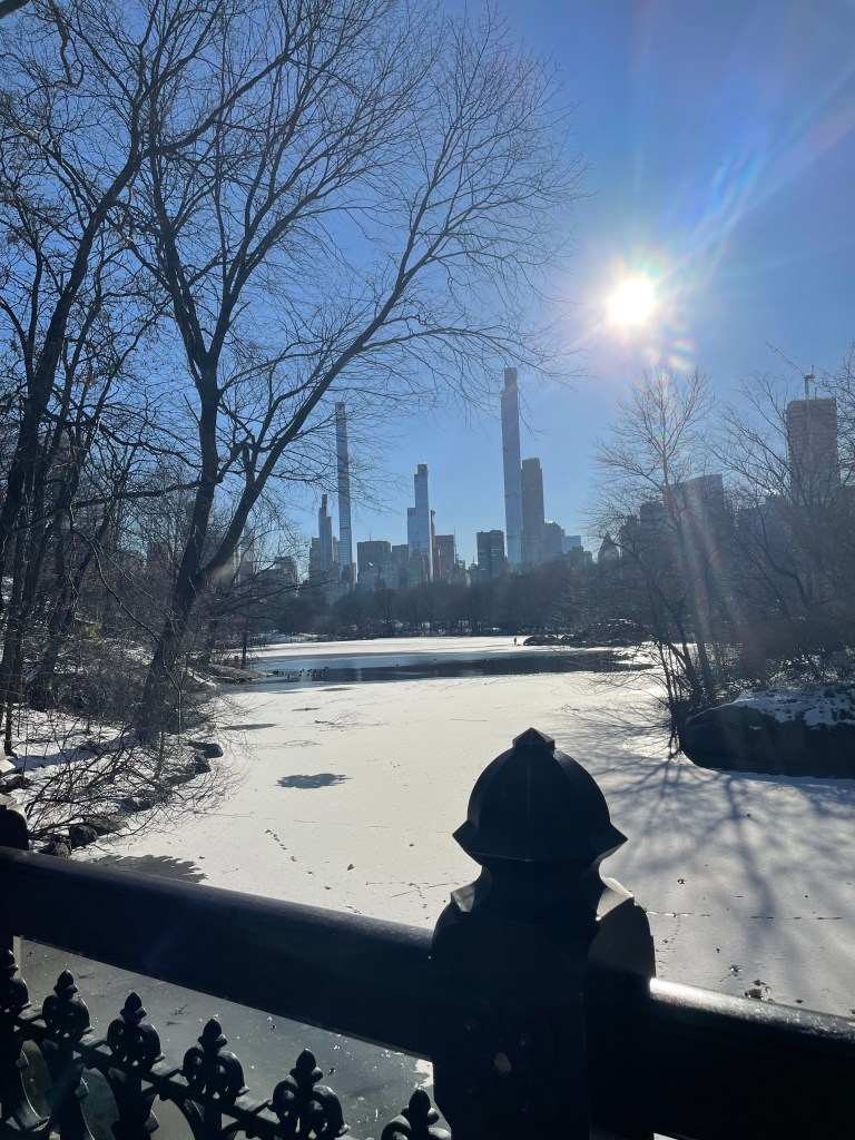 I eyed my fellow neighbors daring to go about their days in 21-degree weather. My pace hastened as I waddled down the brownstone-lined block behind my building. The lofty structures stunt the sun’s rays, resulting in a particularly brisk shaded saunter to Central Park West. AHH. But finally, reaching the sunlight surrounding Central Park is like an encounter with heaven.