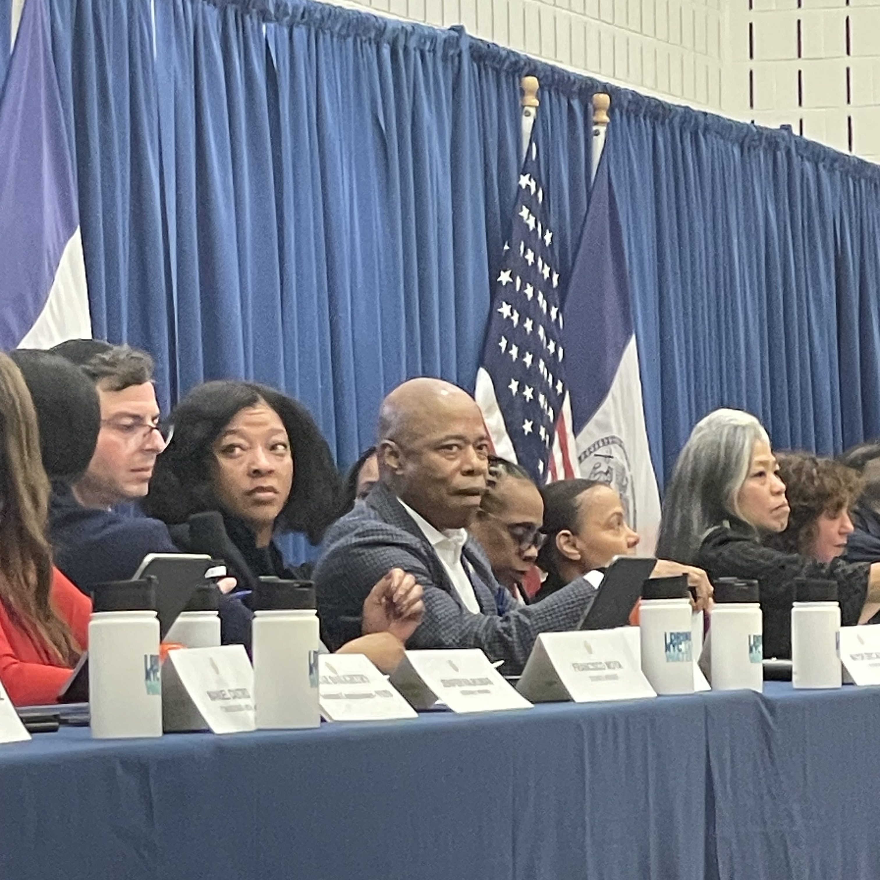 On December 18, Adams and Councilmember Moya shared the squeaky gymnasium floor of P.S. 121 Elementary School for a community conversation. An audience of Corona locals voiced complaints about sex workers loitering on the Avenue. Though sex workers are generally no longer prosecuted, arrests still occur, often prompted by these quality-of-life complaints.